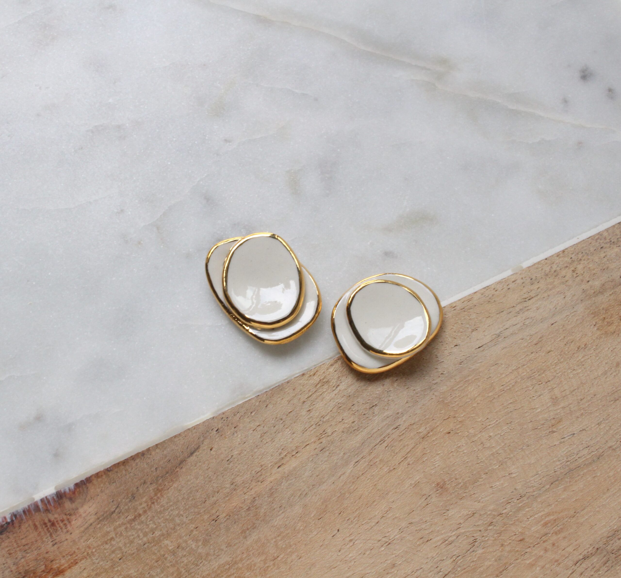 Handmade porcelain earrings with 9ct gold lustre detail.